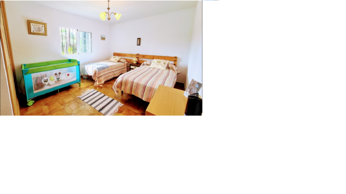 A la primera planta se le realizo una reforma, en la que se elimino una de las habitaciones y se amplió el Salón-comedor. Se accede a través de una escalera que nos lleva hasta el porche de la fachada principal, desde este accedemos al Salón-comedor, un espacio muy amplio, con una bonita chimenea de piedra. Todas las habitaciones son dobles, dos de las cuales cuentan con armario empotrado. La cocina individual se reformó hace unos 10 años y no se le ha dado prácticamente uso, está completamente amueblada y con todos los electrodomésticos. La vivienda dispone de sistema de alarma